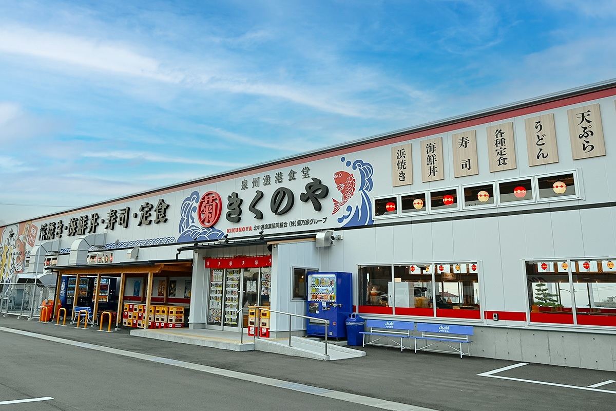南海本線「泉佐野駅」から車で約5分の「泉州漁港食堂 きくのや」は、多彩な海鮮料理を楽しむことのできる、国内外からの観光客で賑わう人気店です。今回は、同店の泉佐野市との縁や開業に至るまでの経緯を、代表取締役社長の菊川直紀氏に伺いました。
