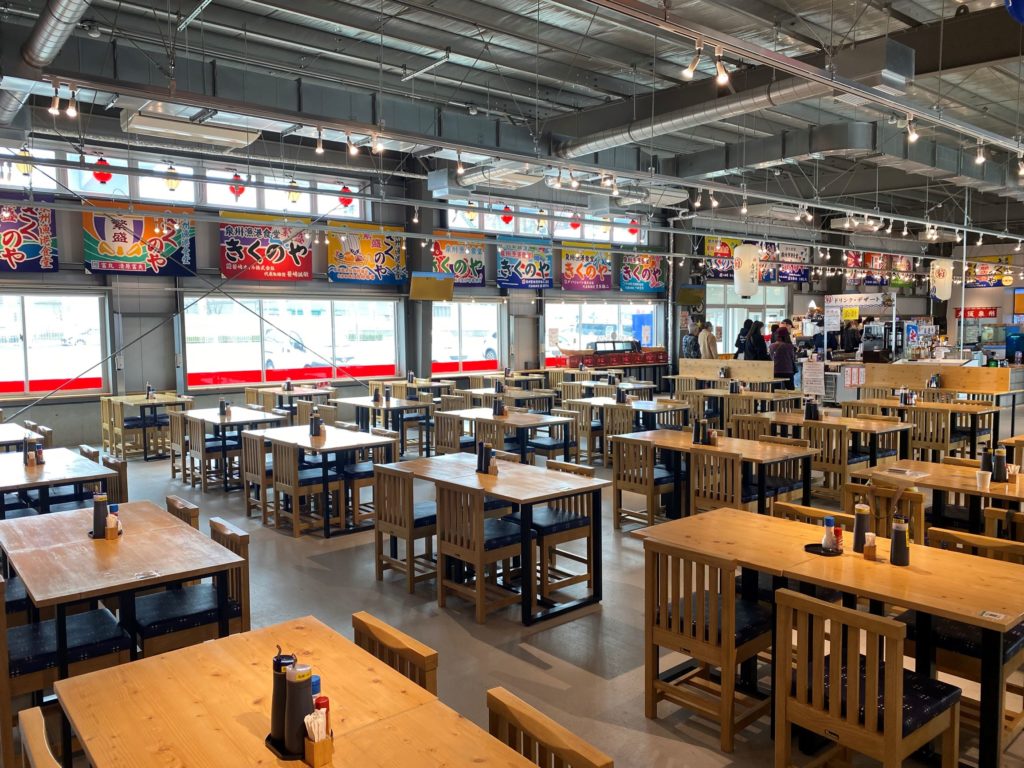 店舗の土地は、所有者や漁業組合に熱心に粘り強く働きかけたことや、泉佐野市で起業したご祖父様の縁に助けられたこともあって契約に至り、念願叶って開業に至ることができました。事業に真剣に取り組む姿勢や人との縁の大切さを、開業から現在に至るまで、身に沁みて感じているとのこと。店舗オープン時には、ゆかりのある人や企業から数多くの大漁旗が届けられ、店内を色鮮やかに彩る大漁旗は、まるで漁港にいるような臨場感を演出し、来店客を楽しませています。